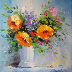 Алмазная мозаика на подрамнике Go to Art «Букет васильков в вазе», 30х30 см