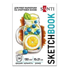 Скетчбук для спиртовых маркеров SANTI «Fresh» склейка А5, 130 г/м2, 30 л.