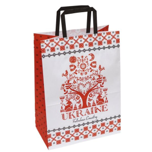 Бумажный крафт-пакет, белый "I love Ukraine", 25х15х34 см