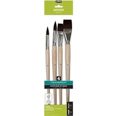 Набор синтетических кистей, длинная ручка 4 шт/уп (плоские №20,24, круглые №16, 20)