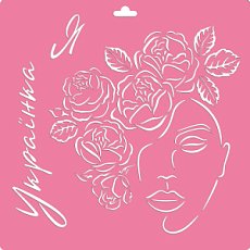 Трафарет многоразовый XL #198 (30х30см), Портрет украинки с розами UA