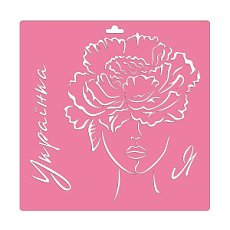 Трафарет многоразовый XL #201 (30х30см), "Портрет украинки с пионом "