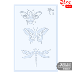 Трафарет многоразовый, пластиковый №U12, серия «Бабочки», 13х20, прозрачный, 0,5мм, ROSA Talent