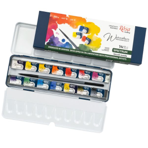 Набор акварельных красок SPECTRUM, 14*2,5мл, кювета, +кисть, Индиго металл. пенал, ROSA Gallery