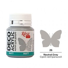 Акрилова фарба для декору, СІРИЙ НЕЙТРАЛЬНИЙ, матова, 75 мл. ROSA TALENT