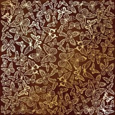 Аркуш паперу з фольгуванням "Golden Butterflies, color Brown aquarel", 30,5x30,5 см, Фабрика Декору