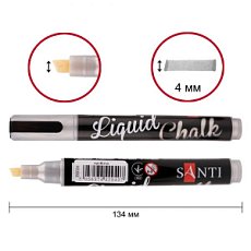 Маркер крейдяний ЗОЛОТИЙ зі скошеним наконечником, Liquid Chalk Marker, 5 мм, Santi