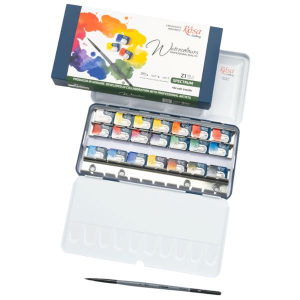 Набор акварельных красок SPECTRUM, 21*2,5мл, кювета, +кисть, Индиго металл. пенал, ROSA Gallery