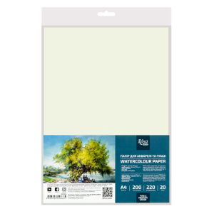 Бумага для акварели, пакет, А4 (21*29,7см), 220-200г/м2, 20л, Среднее + Мелкое зерно, ROSA Studio