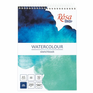 Скетчбук для акварели на спирали А5, 200г/м2, 32 л, белая бумага, Бирюза, ROSA Studio