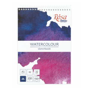 Скетчбук для акварели на спирали А5, 200г/м2, 32 л, белая бумага, Фиолетовый, ROSA Studio