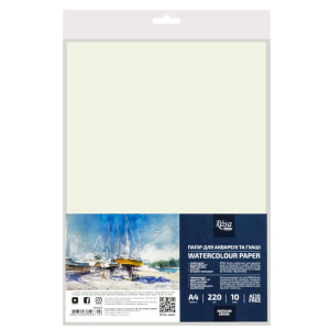 Бумага для акварели, пакет, А4 (21*29,7см), 220г/м2, 10л, Среднее зерно, ROSA Studio
