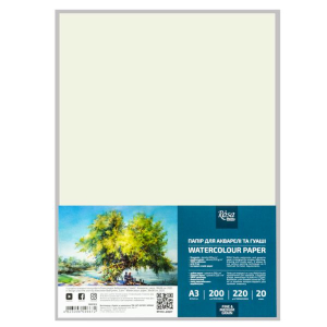 Бумага для акварели, пакет, А3 (29,7*42см), 220г/м2, 20л, Среднее зерно, ROSA Studio